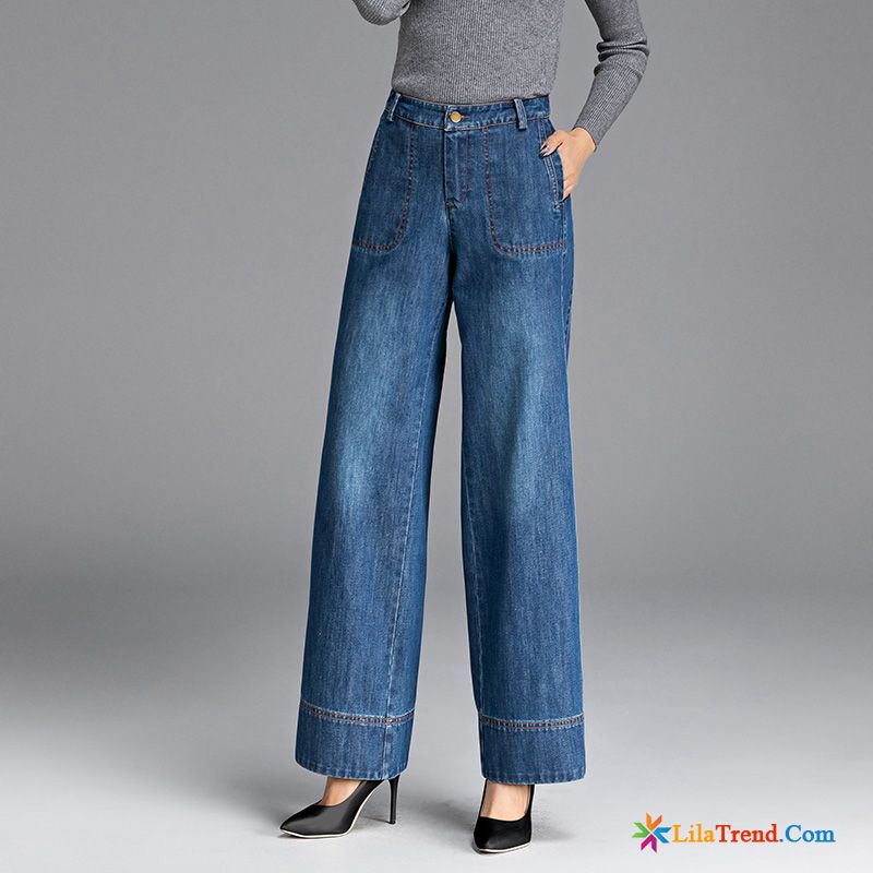 Damen Jeans Straight Gerade Hohe Taille Weites Bein Seide Hose Günstig