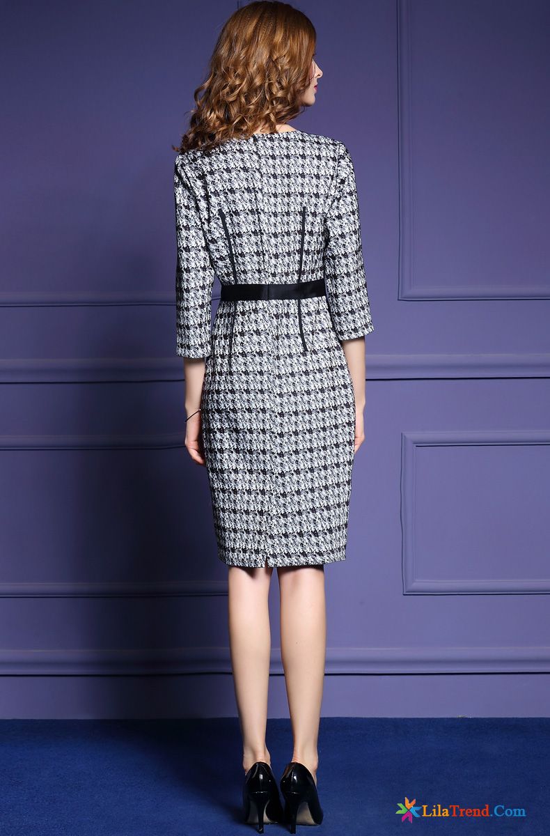 Blaues Kleid Mit Spitze Dunkelrot Drucken Feder Neu Beruflich Schlank Rabatt