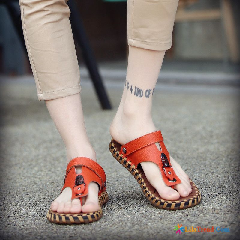 Herren Leder Pantoffel Khaki Draussen Strand Neue Trend Schwarz Kaufen
