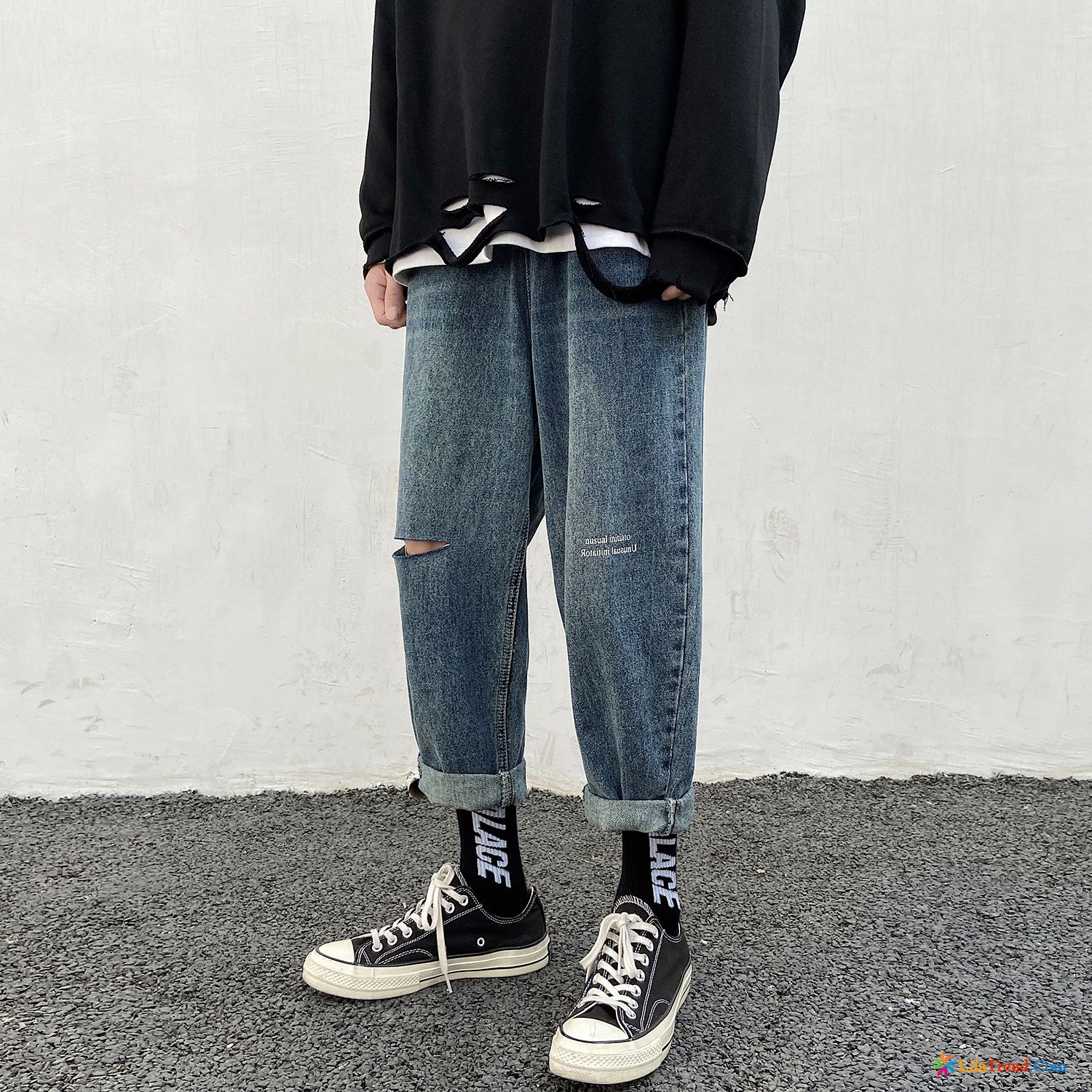 Jeans Mit Gummibund Herren Violett Gerade Allgleiches Weites Bein Trend Lose Kaufen
