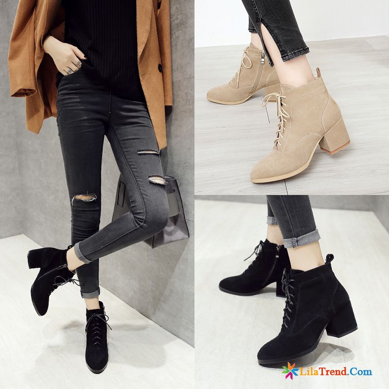 Schwarze Damen Stiefeletten Neue Damen Dick Schuhe Allgleiches Rabatt