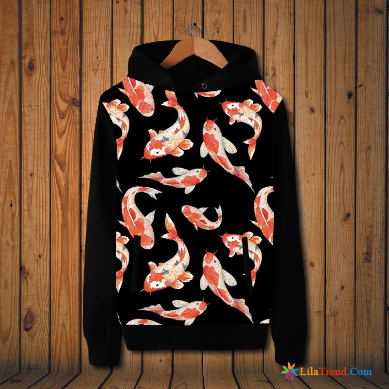 Schwarzer Herren Kapuzenpulli Rotblond Hoodies Chinesischer Stil Retro Karpfen Kleider Kaufen